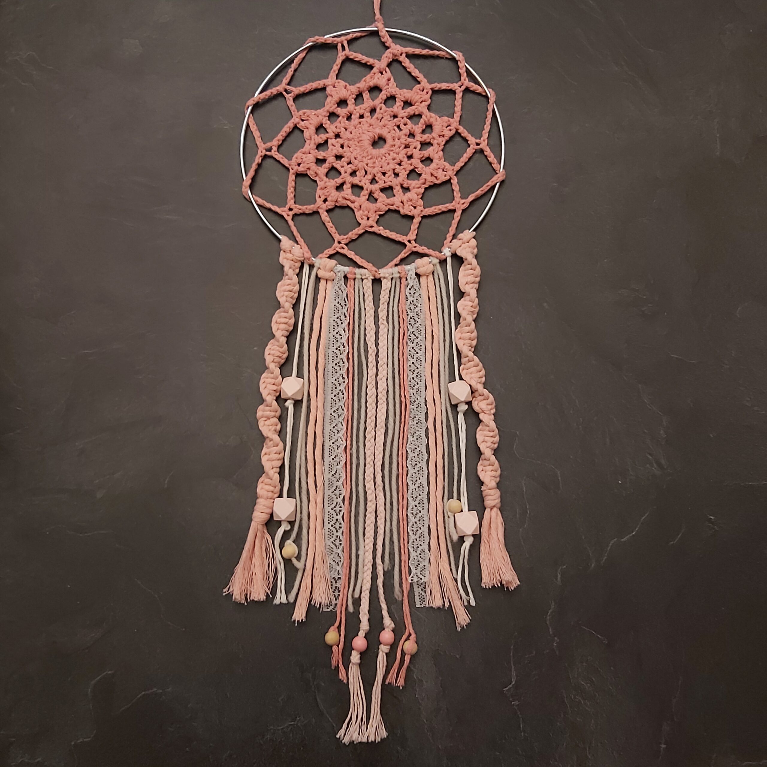 Attrape-rêves rose crochet et macramé