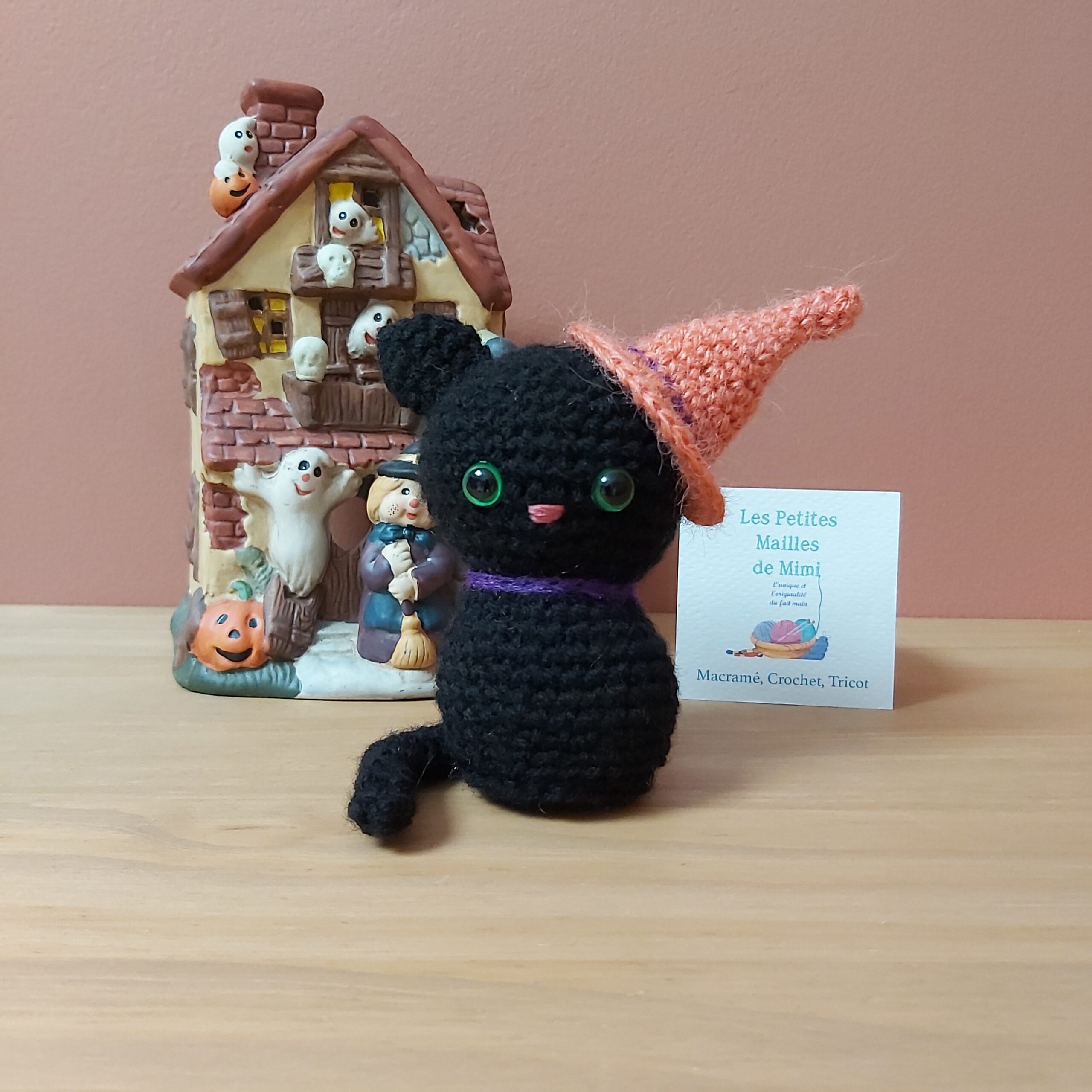 Apportez une touche magique et ensorcelante à votre décoration d’Halloween avec ce chat noir crocheté à la main, coiffé de son adorable chapeau de sorcier. Réalisé en laine, il allie le charme du fait main à l’ambiance mystérieuse d’Halloween.
