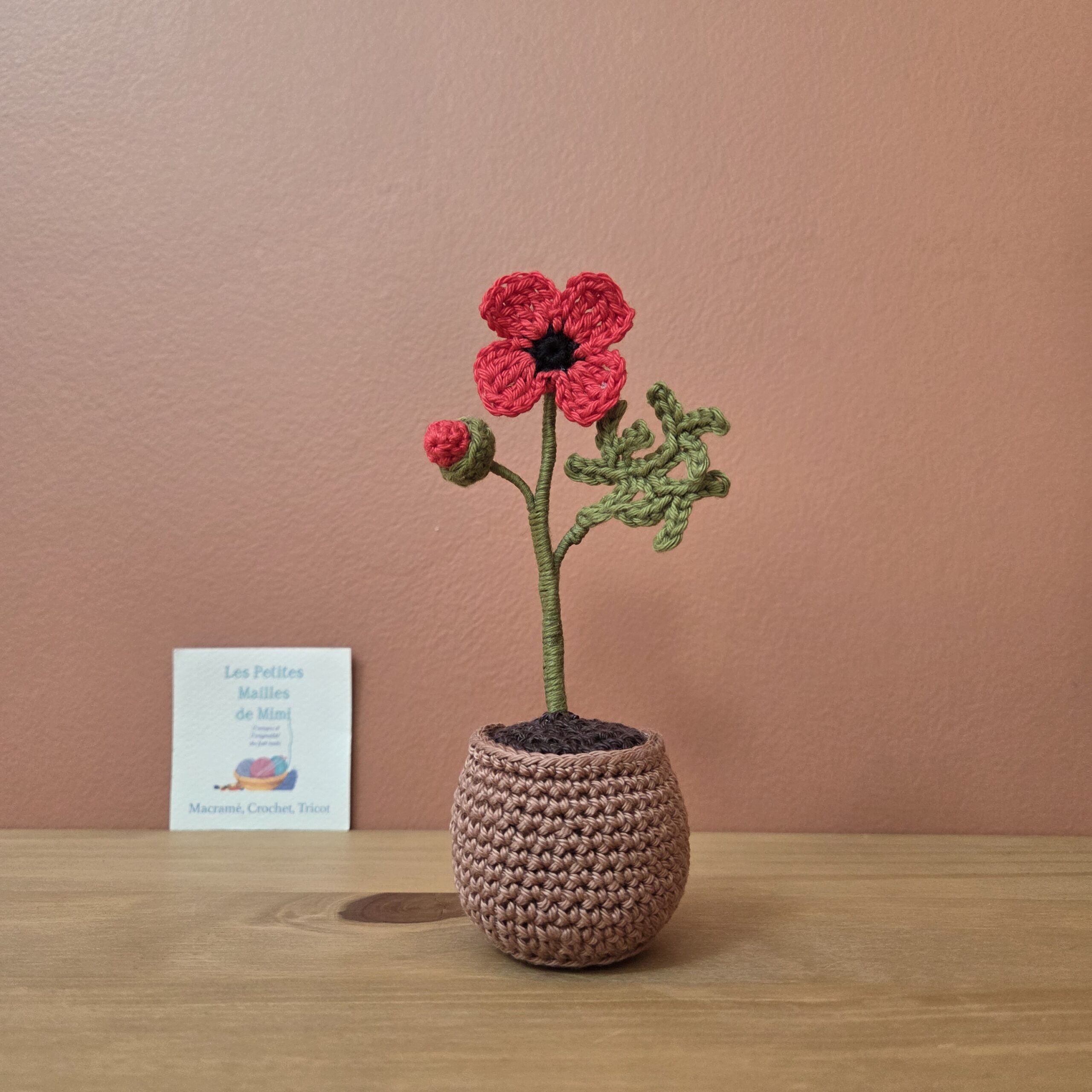 Joli coquelicot réalisé à la main au crochet, confectionné avec soin pour apporter une touche délicate et poétique à votre intérieur 🌺Je l’ai complété d’un peu de feuillage pour apporter du naturel 🍃 et d’un joli petit bouton.